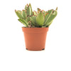 Panda Plant grows slowly into a small, branching shrub covered in thick silvery leaves that feel almost velvet-like to the touch. Each leaf is edged and tipped with rusty brown spots that stand out sharply against the pale coating. It sits well on a bright shelf for months without demanding anything beyond the occasional careful watering.